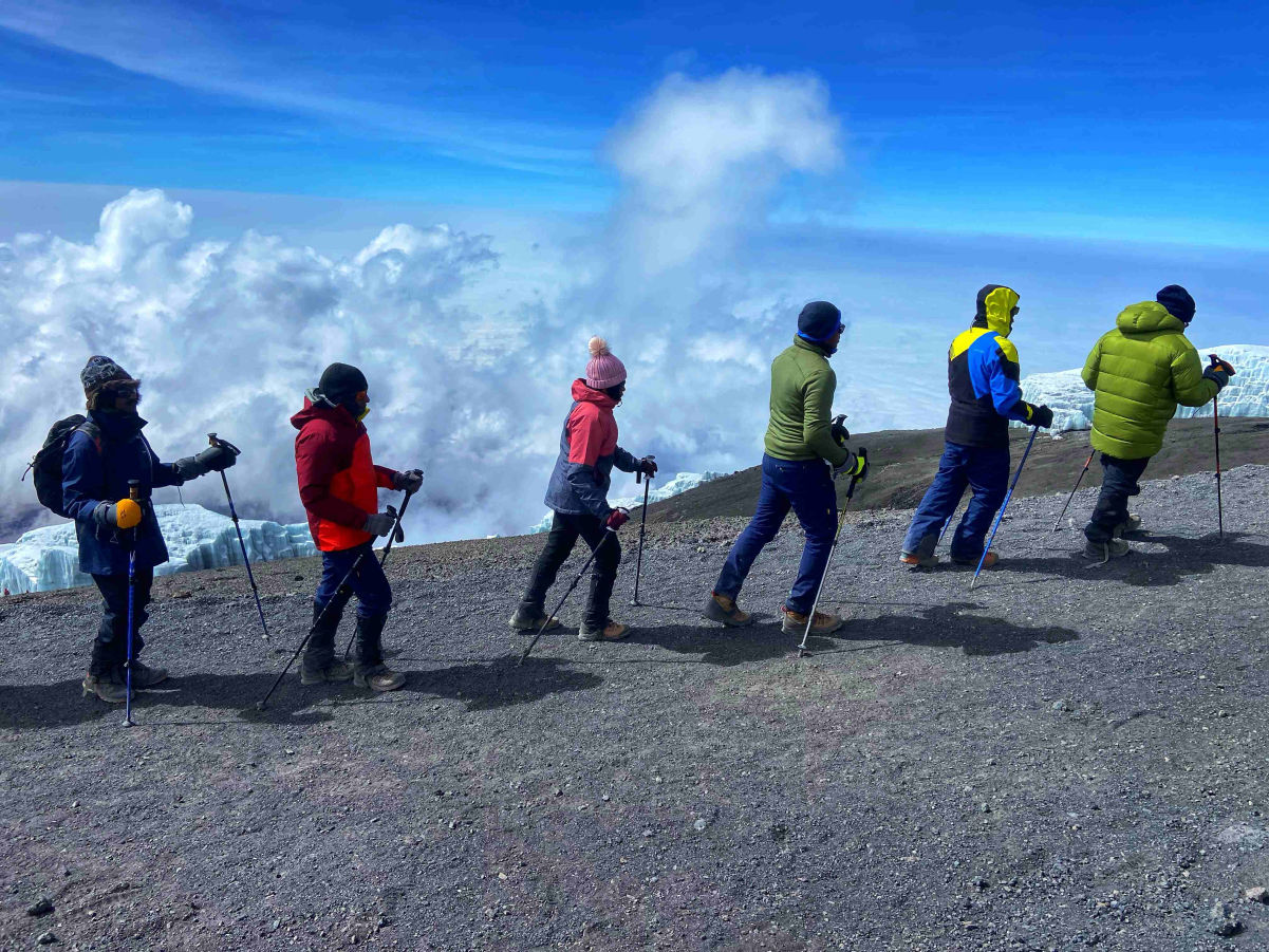 Very early in the morning (around midnight), we begin our push to the summit. This is the most mentally and physically challenging portion of the trek. The wind and cold at this elevation and time of day can be extreme. We ascend in the darkness for several hours while taking frequent, but short, breaks. At Gilman’s point (18,600 ft), you will be rewarded with the most magnificent sunrise you are ever likely to see coming over Mawenzi Peak. Finally, we arrive at Uhuru Peak- the highest point on Mount Kilimanjaro and the continent of Africa.
